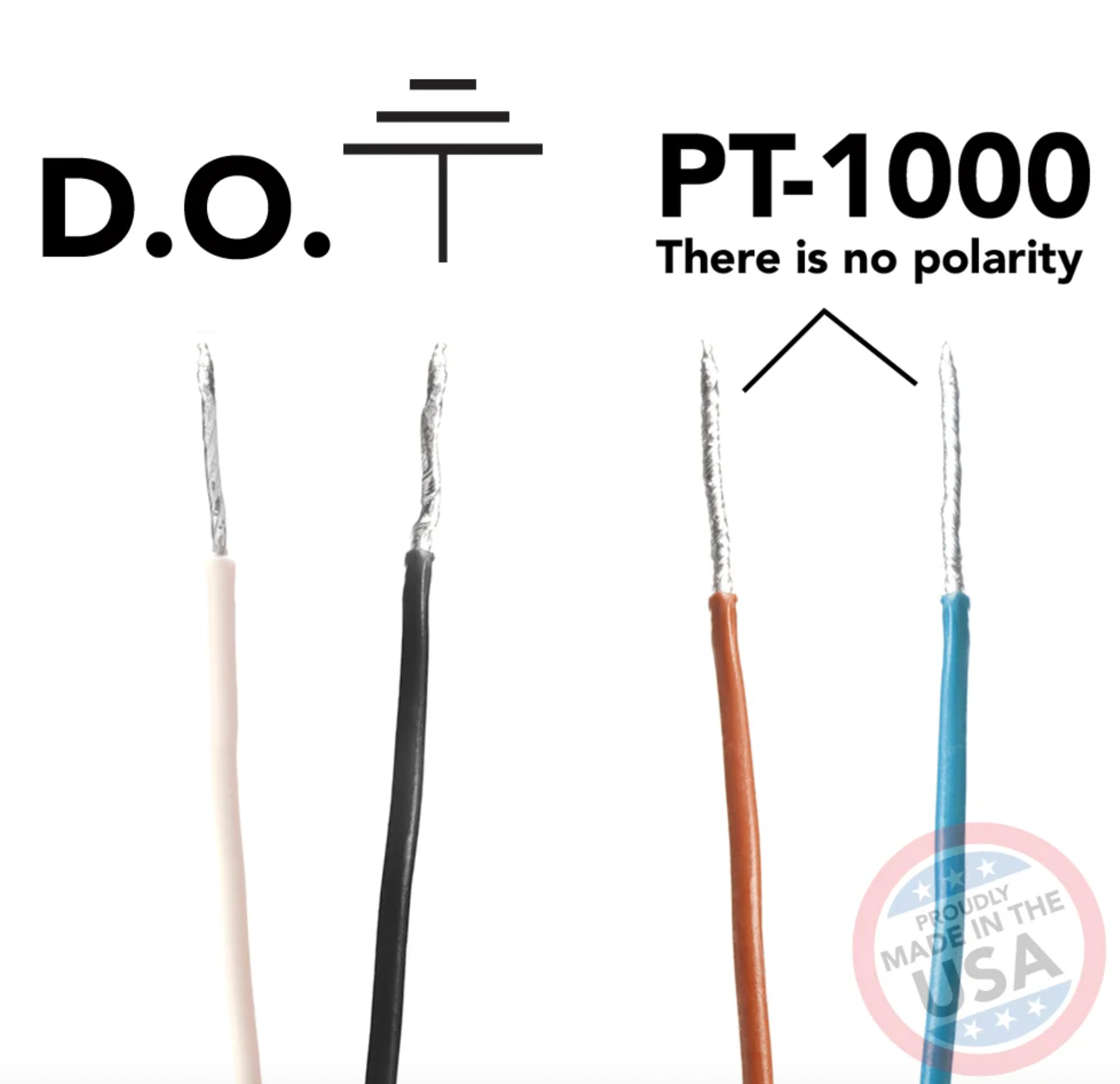 The sensor cable is 3 m (10 ft) long and has tinned ends. Use the internal sensor bridge built in to every WaterFeature# device for connecting.