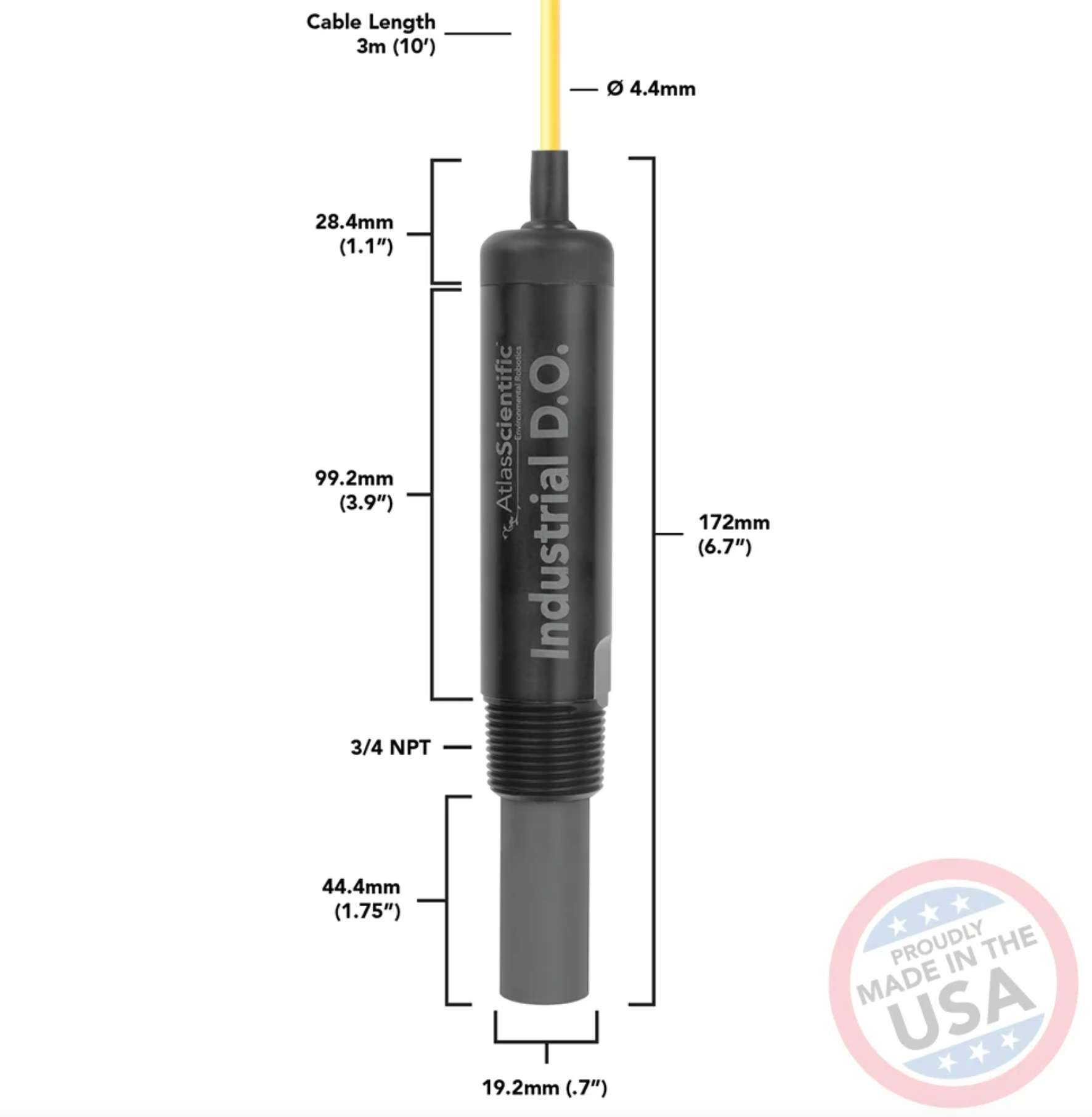 The Atlas Scientific Industrial DO Probe is ideal for harsh environments and longer intervals between reconditioning. It includes a built-in PT-1000 RTD probe for temperature compensation.